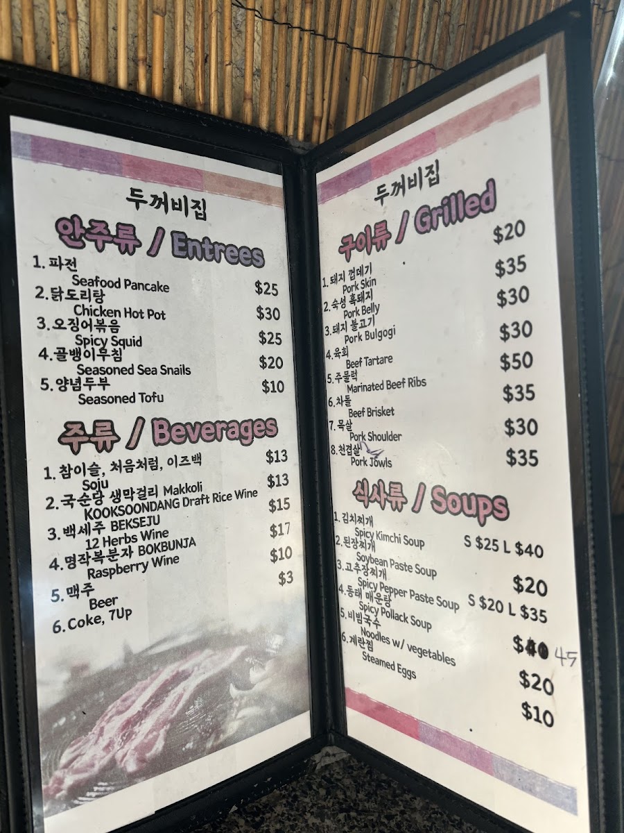 Items like samgyeopsal and spicy kimchi soup embody the welcoming, unpretentious atmosphere of the restaurant, inviting diners to enjoy authentic flavors in a setting that’s true to Korean barbecue culture. Whether stopping by for a leisurely lunch or an evening meal, guests can expect food that pairs well with simple Korean beverages, creating a balanced and satisfying experience.